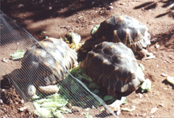 Geochelone radiata (links) und Geochelone pardalis (rechts) werden auch im Schildkrötendorf