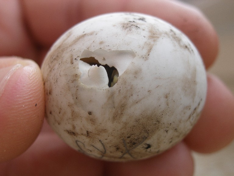 Der Schlüpfling hat mit dem Eizahn die Schale durchbrochen.Innen ist gut